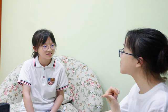 林荫公益调研员对县中「一块屏」网课班学生进行一对一调研。左一为蔺阳中学罗婷,今年被北京大学录取