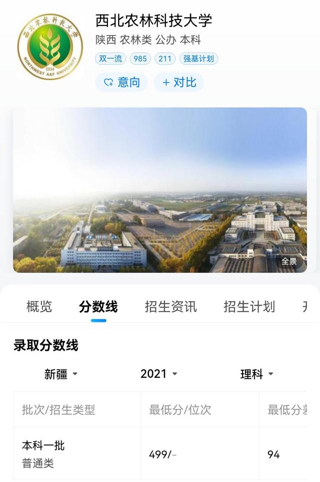然后,特意去搜了一下,西北农林科技大学2021年在新疆的一批次理科录取最低分确实只有499分,都没有超过500分。