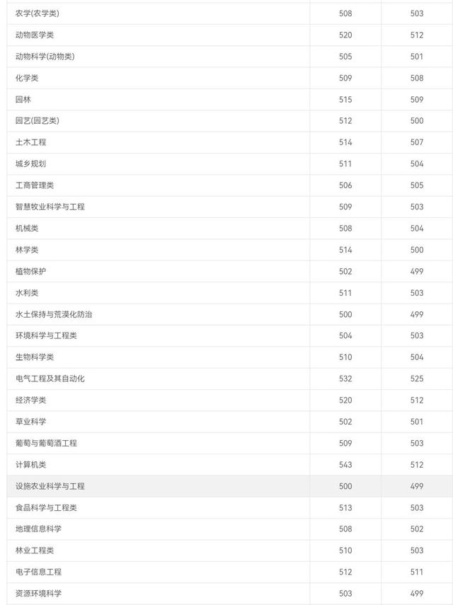 不看不知道,一看果然如大家所说,就算是西农最好的农学专业,最高分也只有508分。