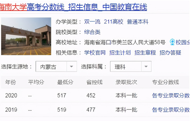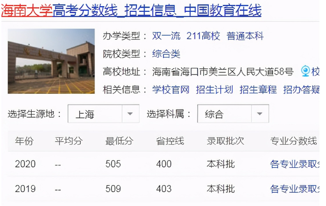 海南大学就这样一所学校,做为一所211,它的分数大部分还可以用平价来描述。而且近些年仍在一些地域招生二本线的学生,像青海地区,2020年一批本的录用分数是517分,二本的分数线在493分,仅凭借500上下的分数就能上一所211学校,确实让人羡慕嫉妒。