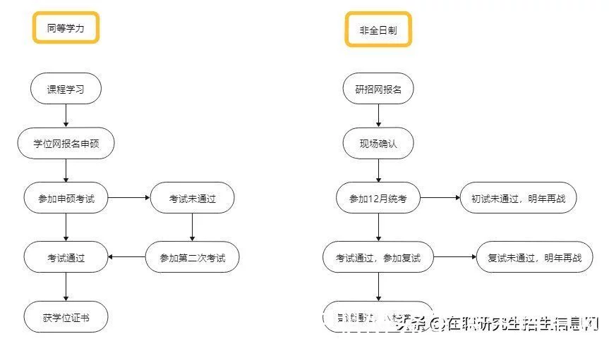 非全日制需在9月和10月报名,11月参加现场确认,12月或次年1月参加全国统考,3、4月参加院校复试。