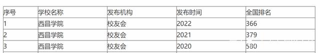 在校友会2022排名中,西昌学院全国排名366位,相较于2020、2021年,位次提升非常明显。