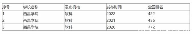 在软科大学2022排名中,西昌学院全国排名422位,相较于2020、2021年,位次有所提升。
