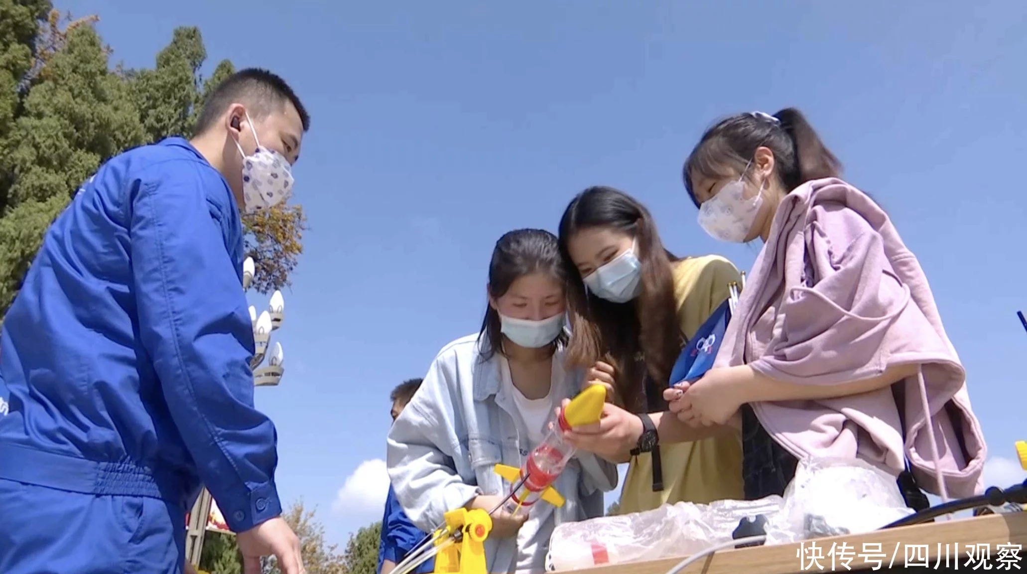为了让师生感受火箭升空的过程,现场的工作人员带领同学们利用由塑料瓶与塑料模型搭建而成的水火箭,来模拟火箭升空,按下发射开关后,不少同学成功发射水火箭。在活动现场,不少航天工作者也亲自与师生交流畅谈,讲述航天伟业背后故事。