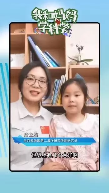 同时,为了给参与活动的妈妈和孩子们做好示范,自然资源部第二海洋研究所副研究员、典赞·2020科普中国年度十大科学传播人物、我国首位乘蛟龙号潜入大洋的女科学家唐立梅首次带领女儿一起出镜,为我和妈妈学科学活动录制亲子示范视频,以互动问答的形式,分享她从深海到南极的探险故事。