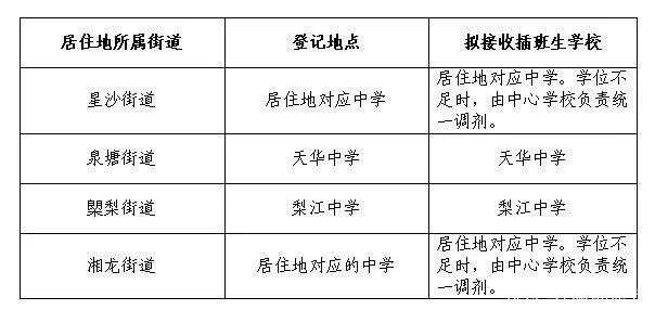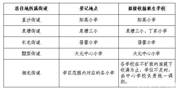 与此同时,《办法》明确毕业年级(小六年级和初三年级)一般不插班、不转学。非毕业年级确实有转学插班需求的学生,根据长沙县城区公办小学\初中插班登记地点安排进行现场报名登记。具体插班登记地点安排如下: