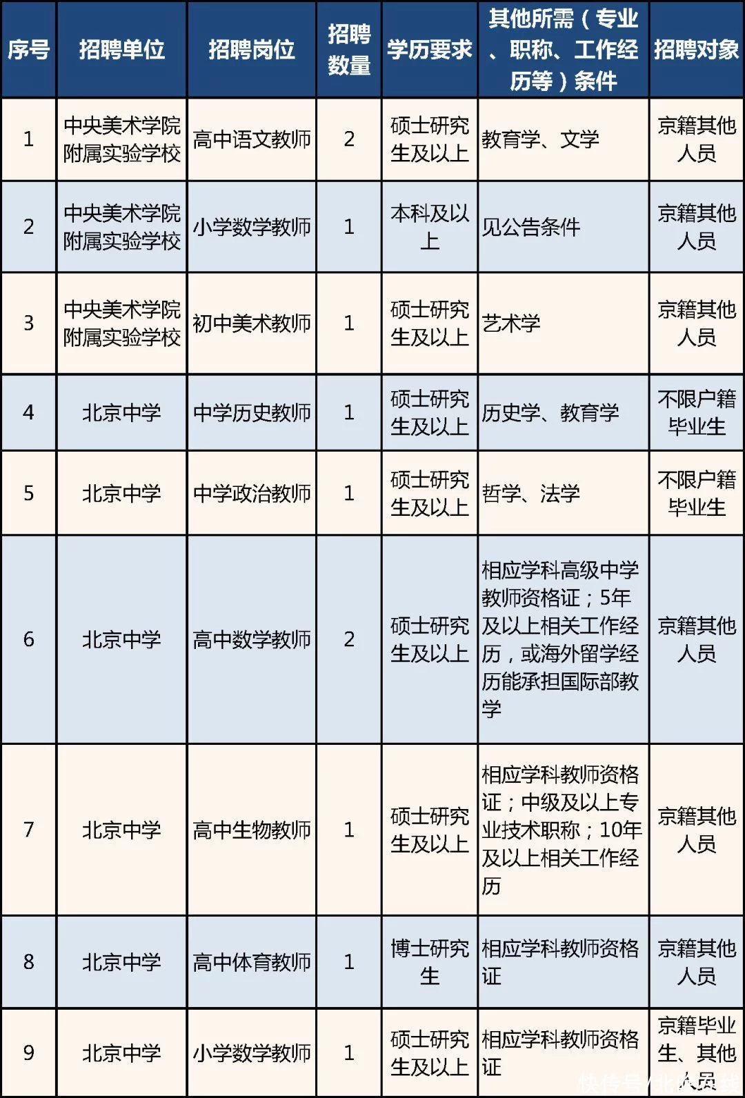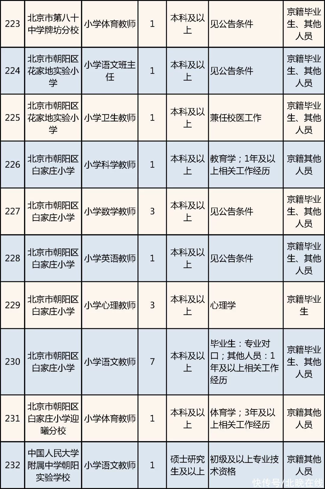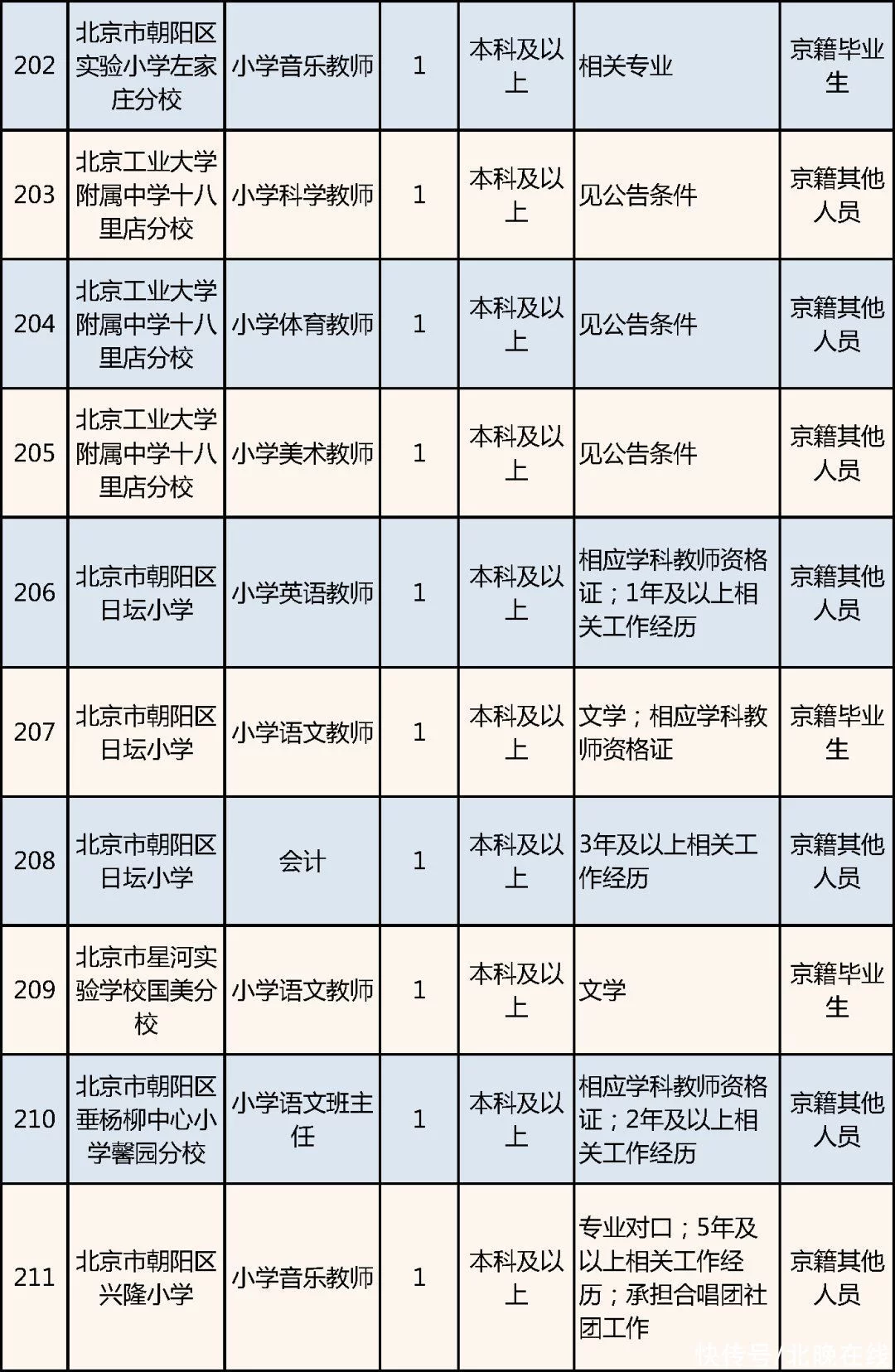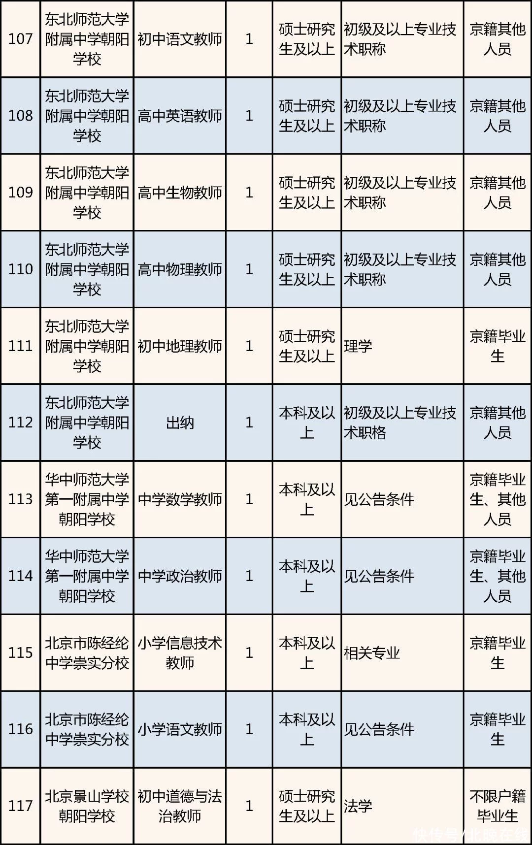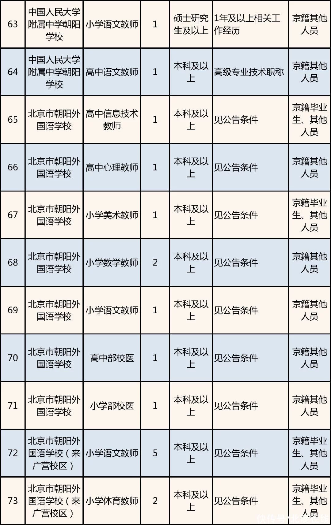 招聘岗位具体条件见《北京市朝阳区教育委员会所属事业单位公开招聘岗位表》