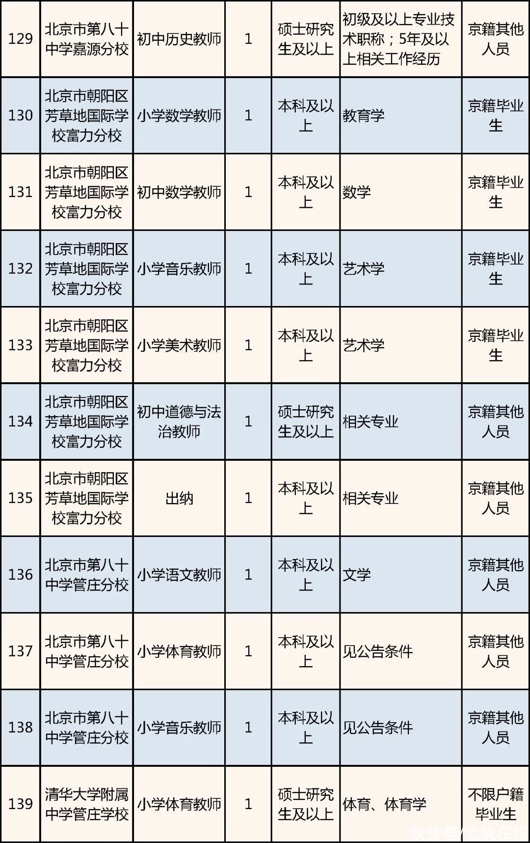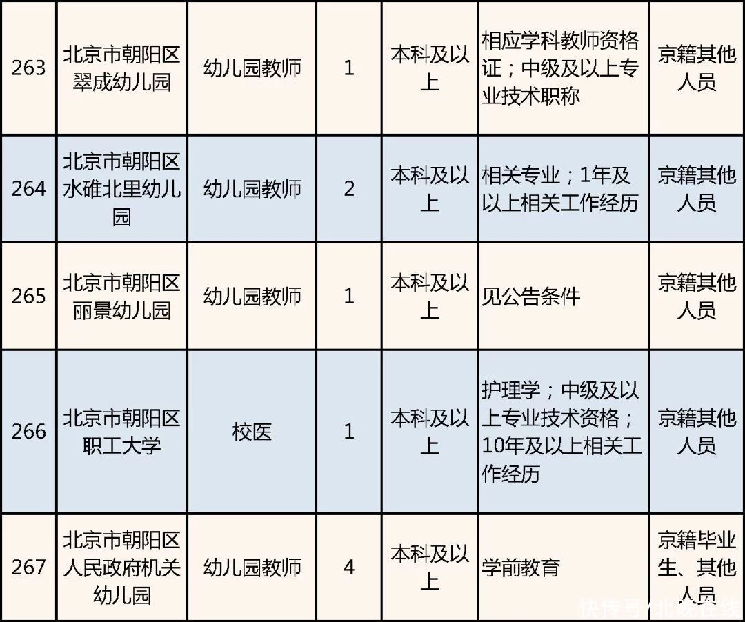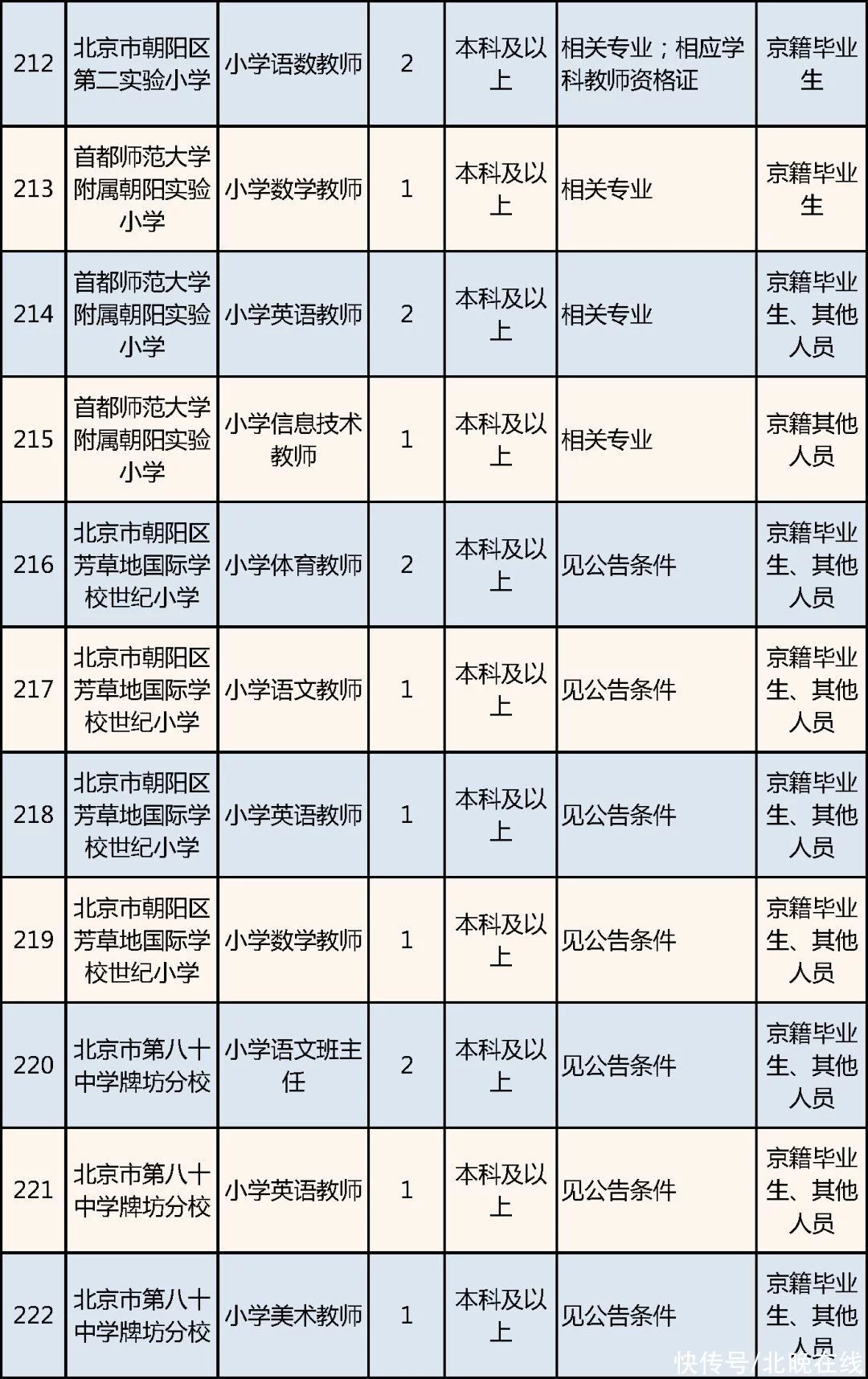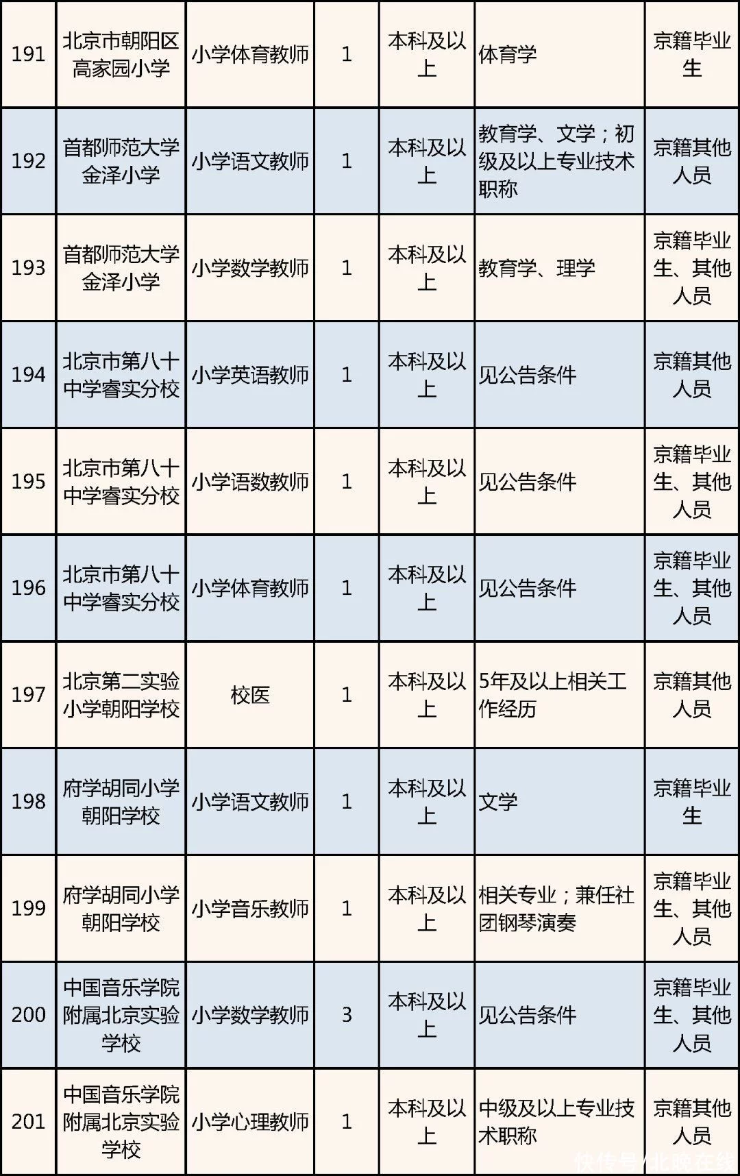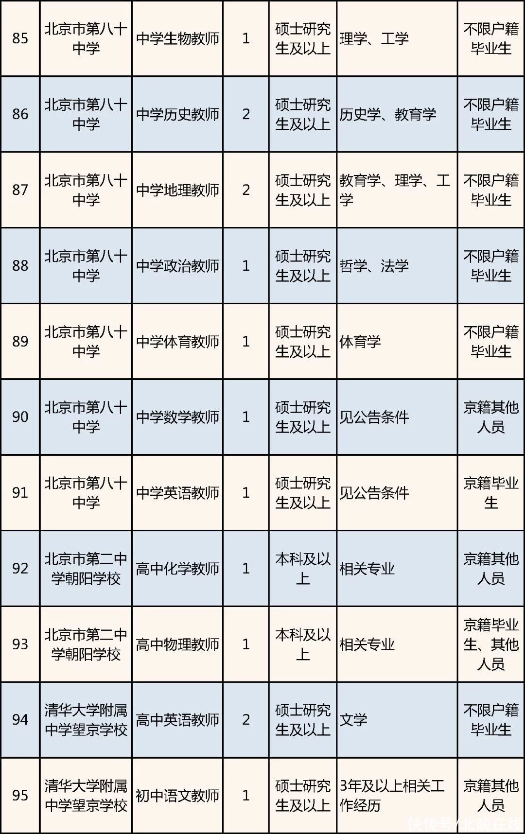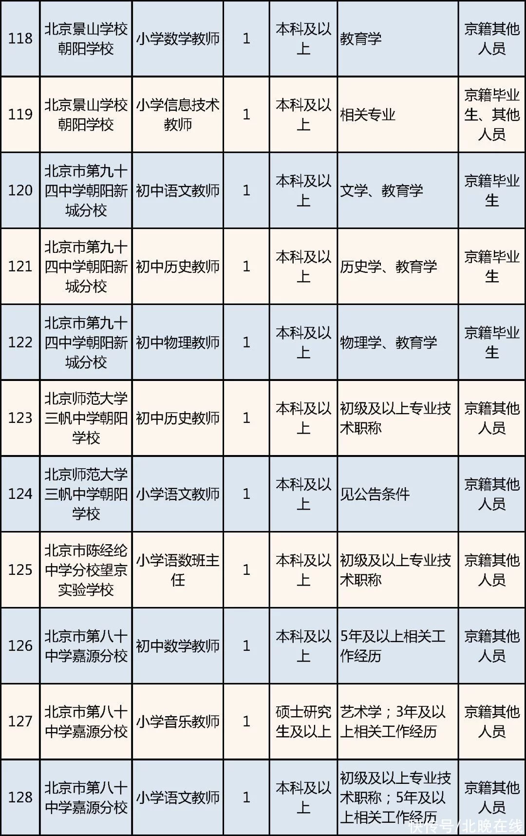 招聘岗位具体条件见《北京市朝阳区教育委员会所属事业单位公开招聘岗位表》
