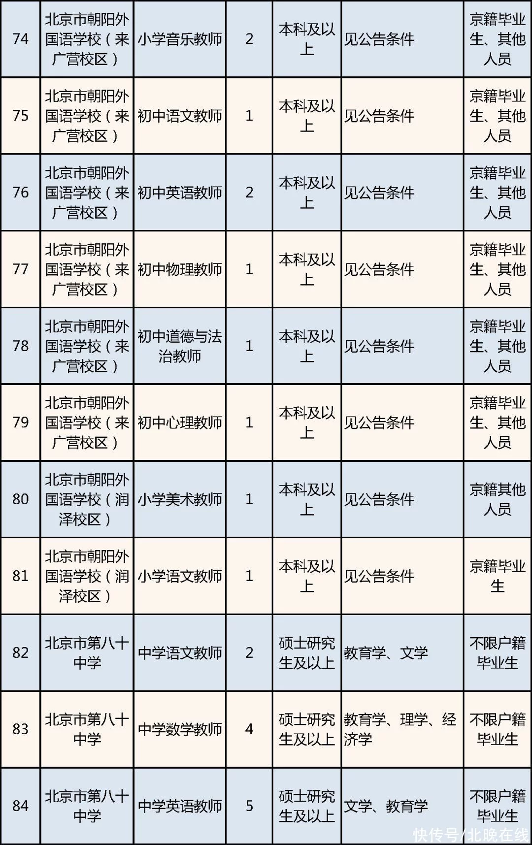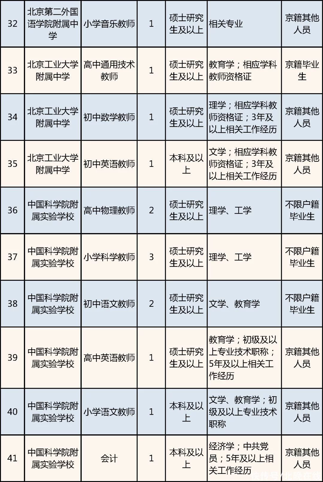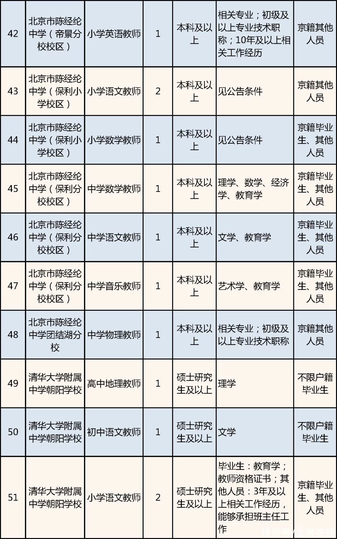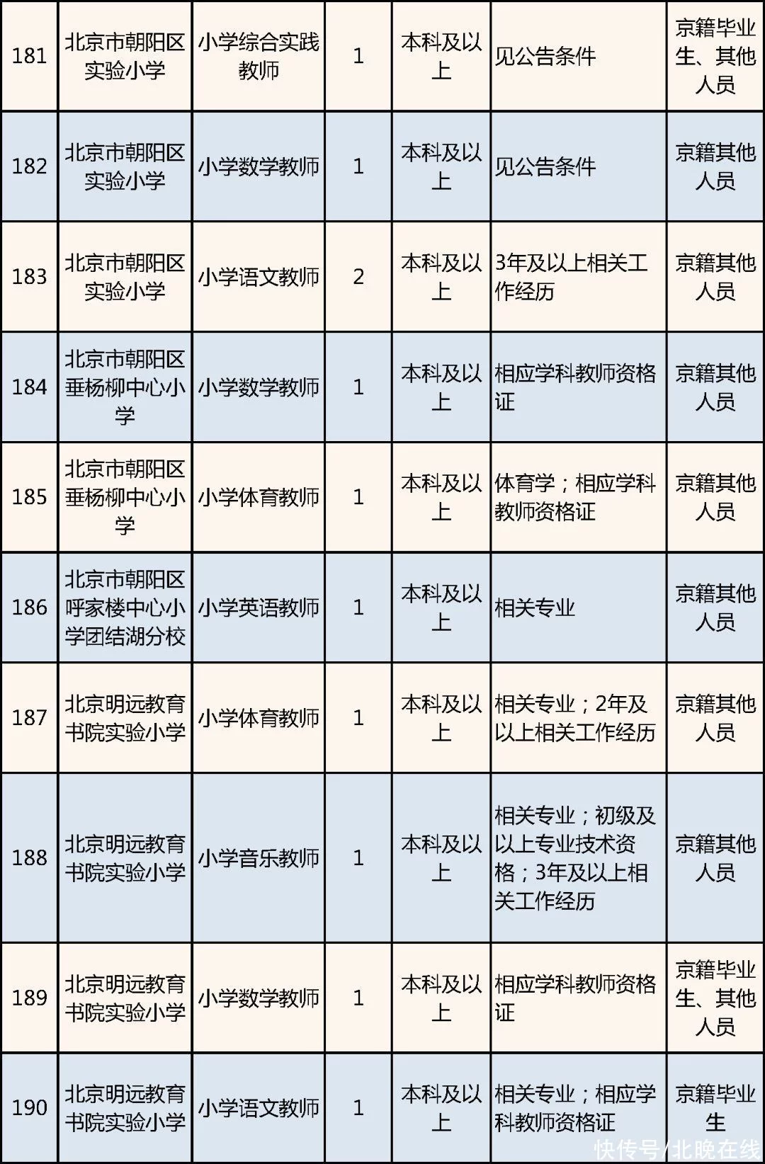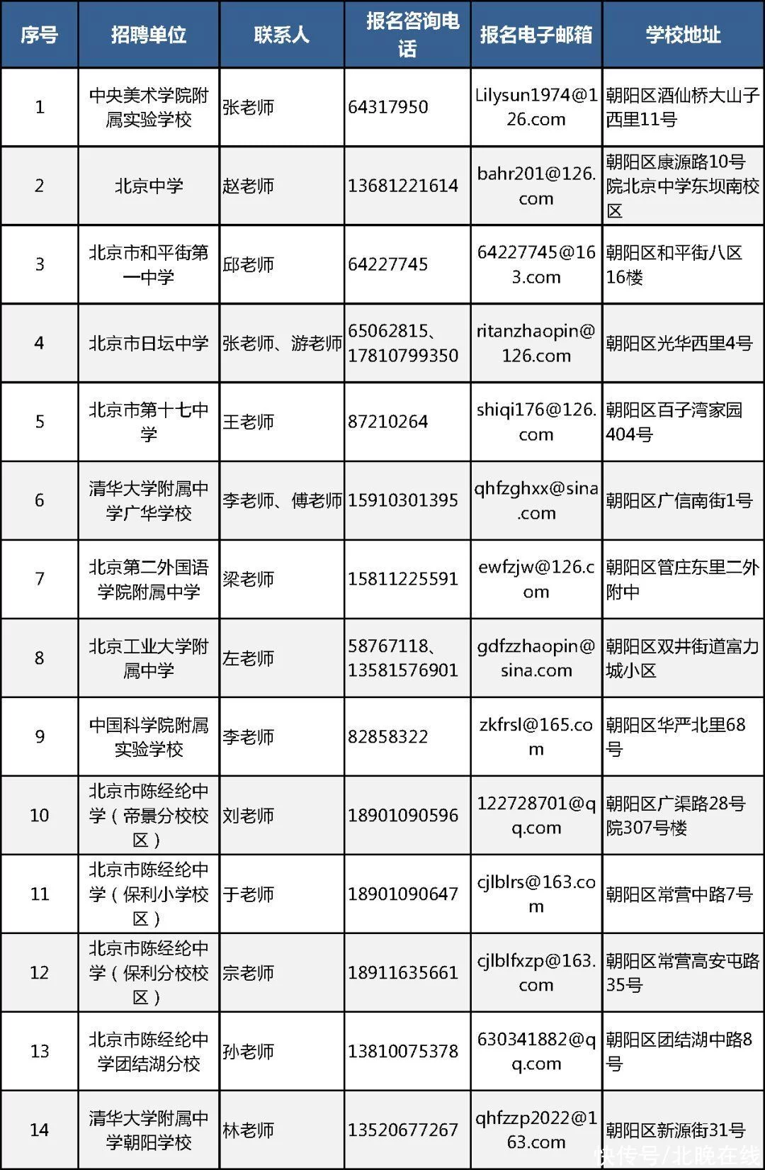 招聘岗位具体条件见《北京市朝阳区教育委员会所属事业单位公开招聘岗位表》