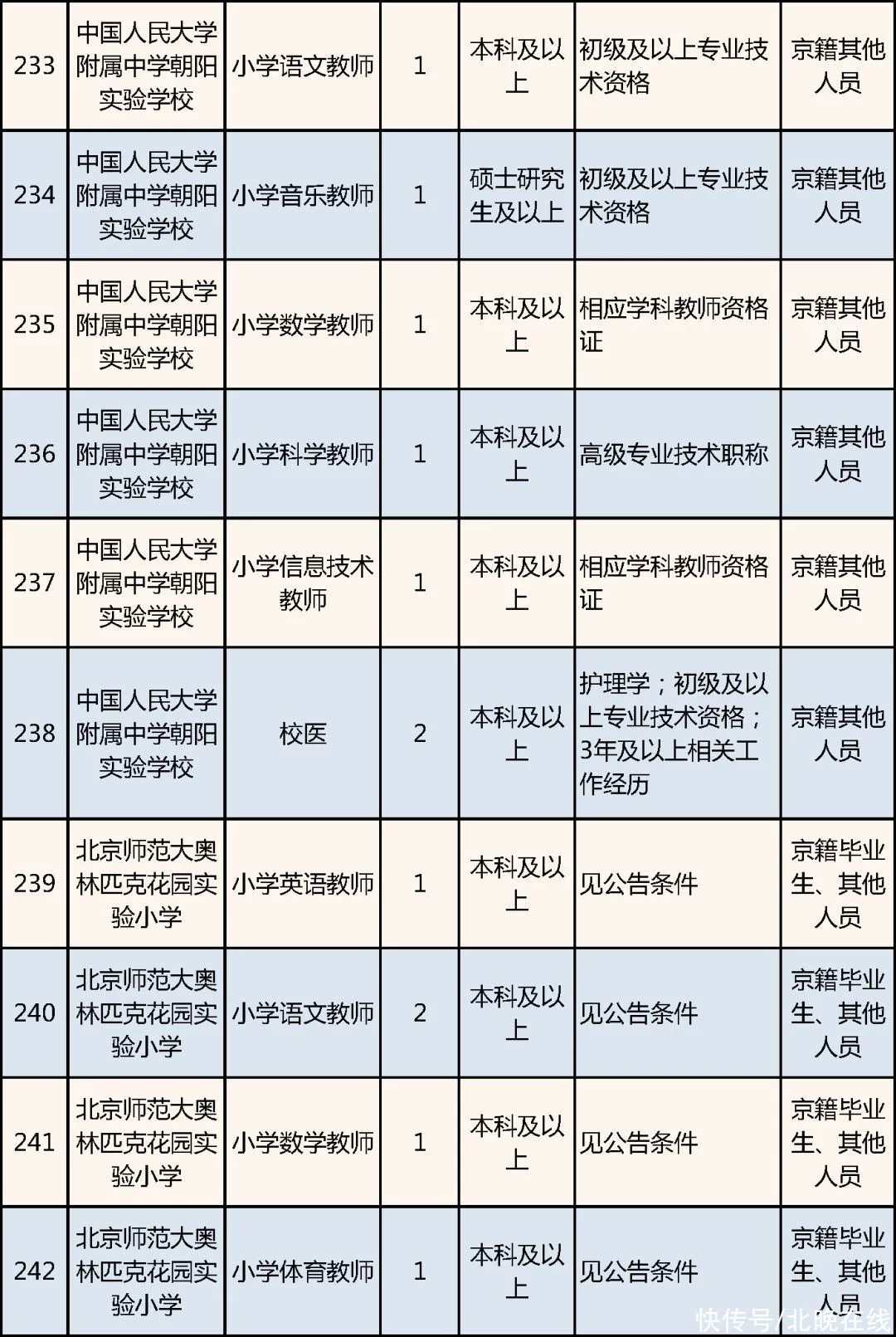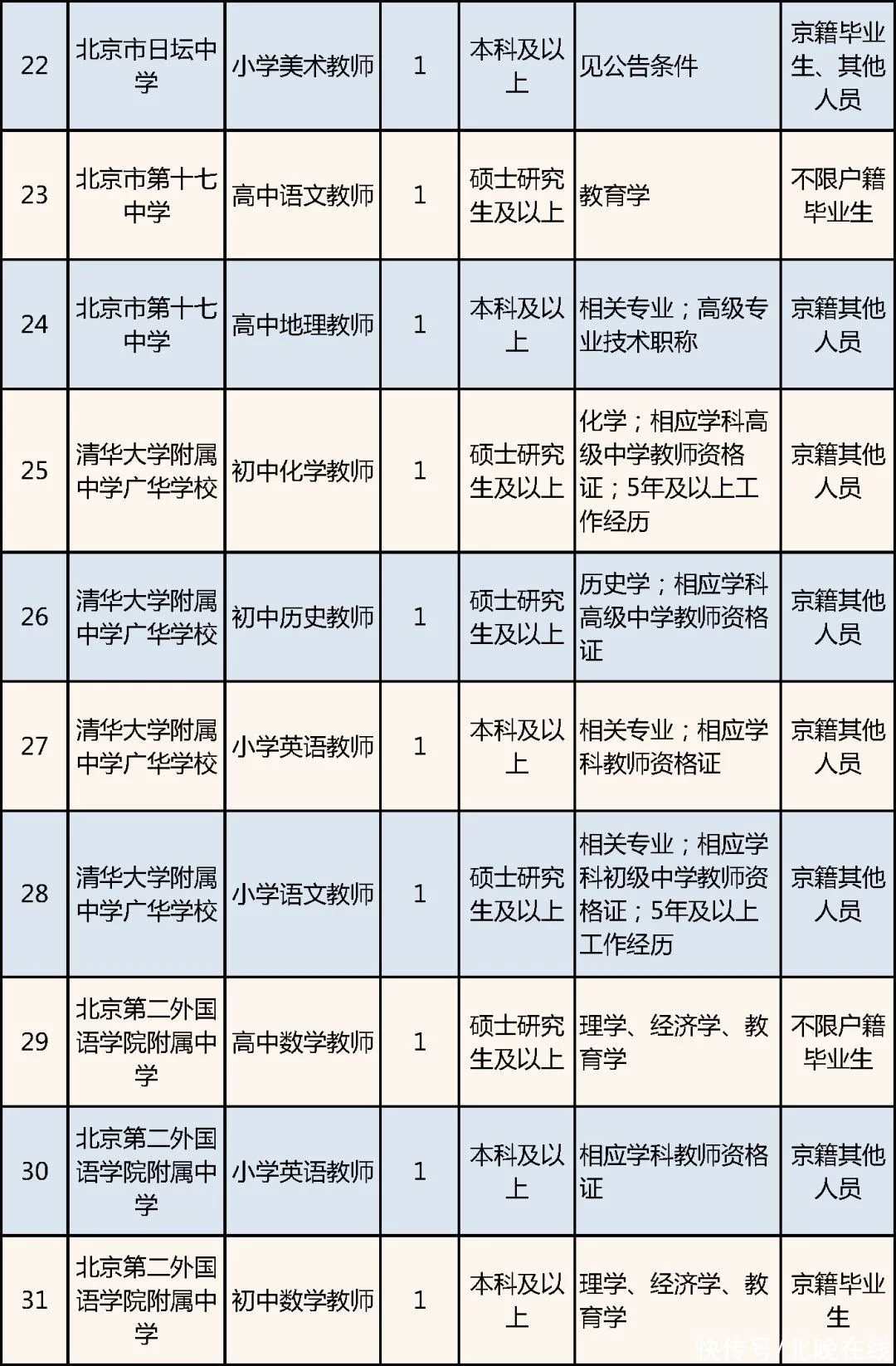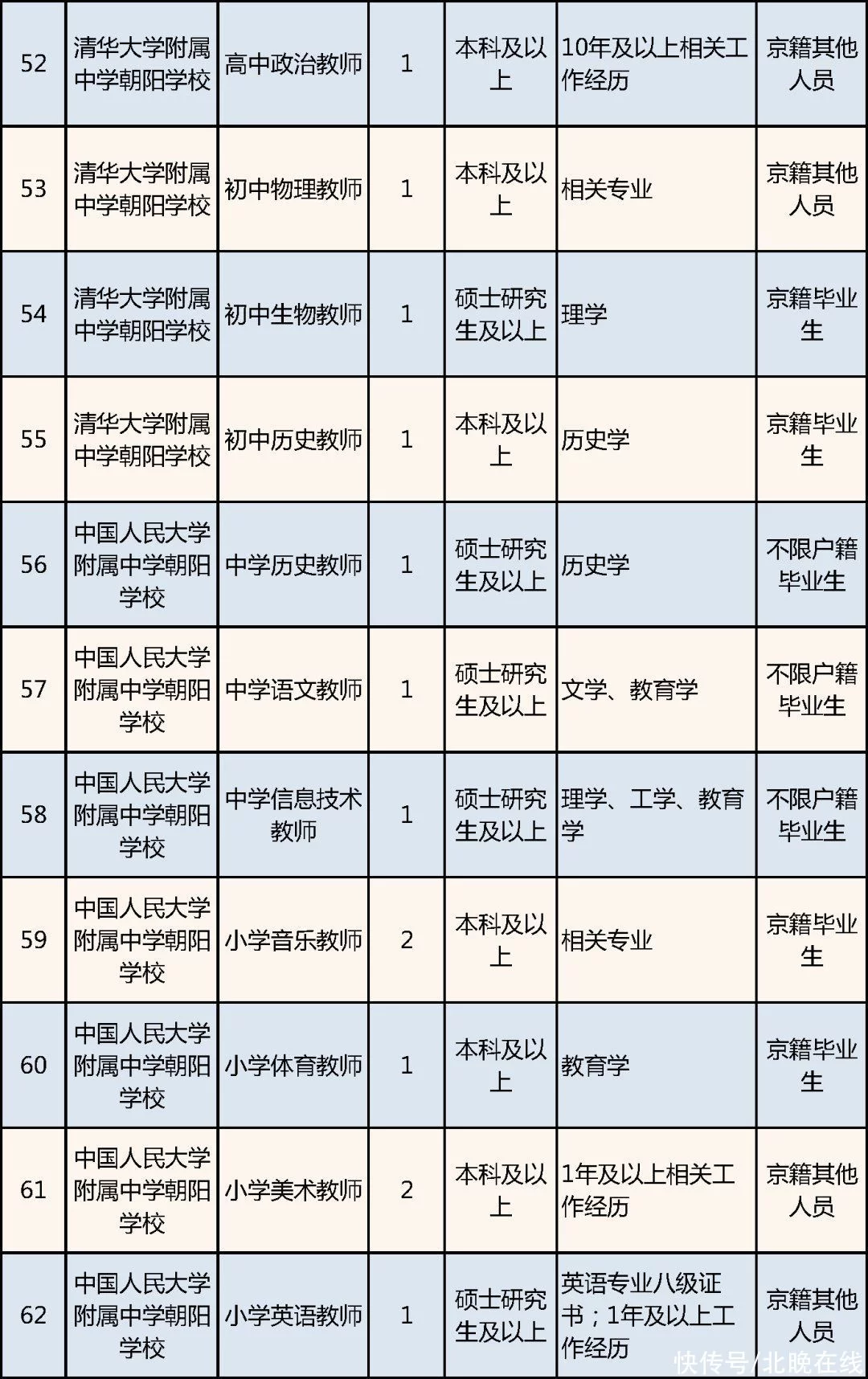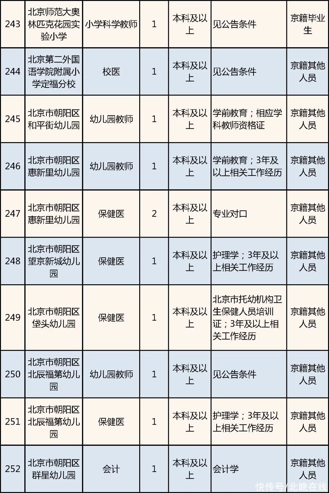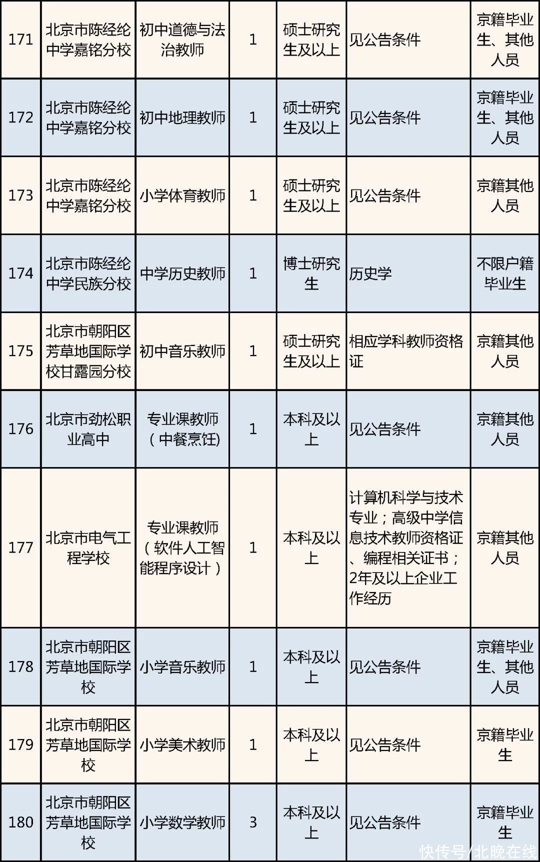 招聘岗位具体条件见《北京市朝阳区教育委员会所属事业单位公开招聘岗位表》