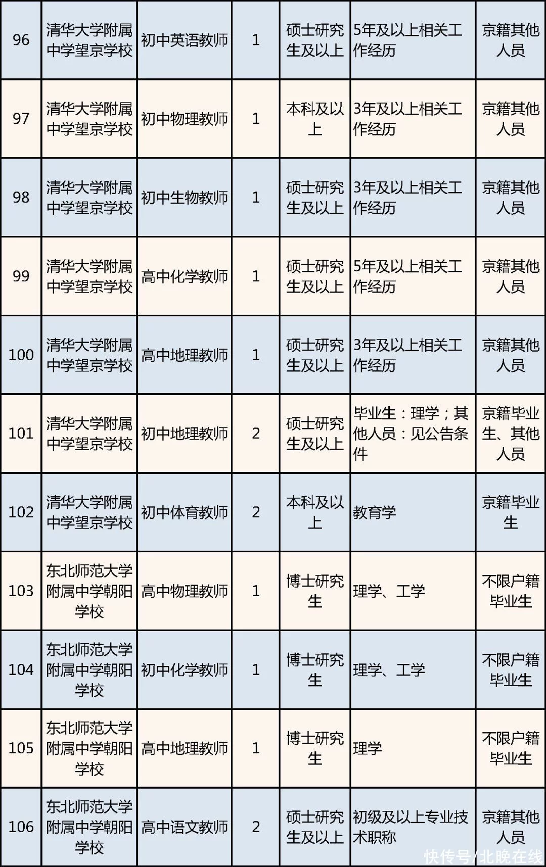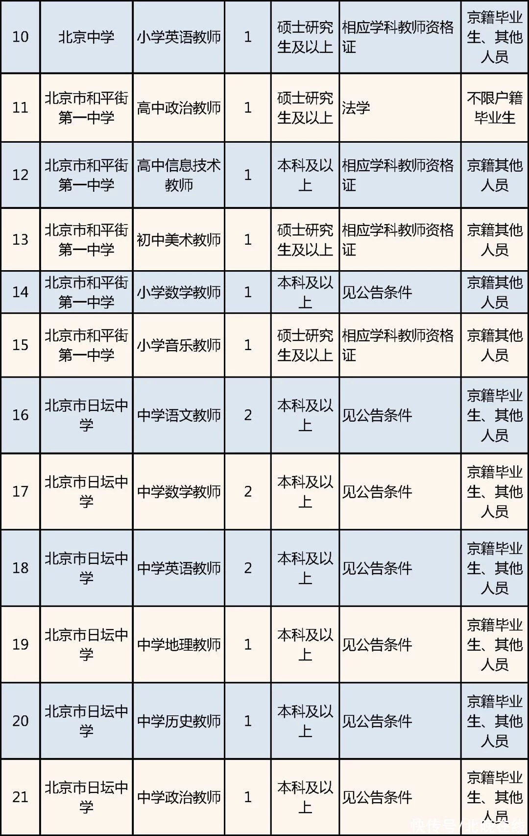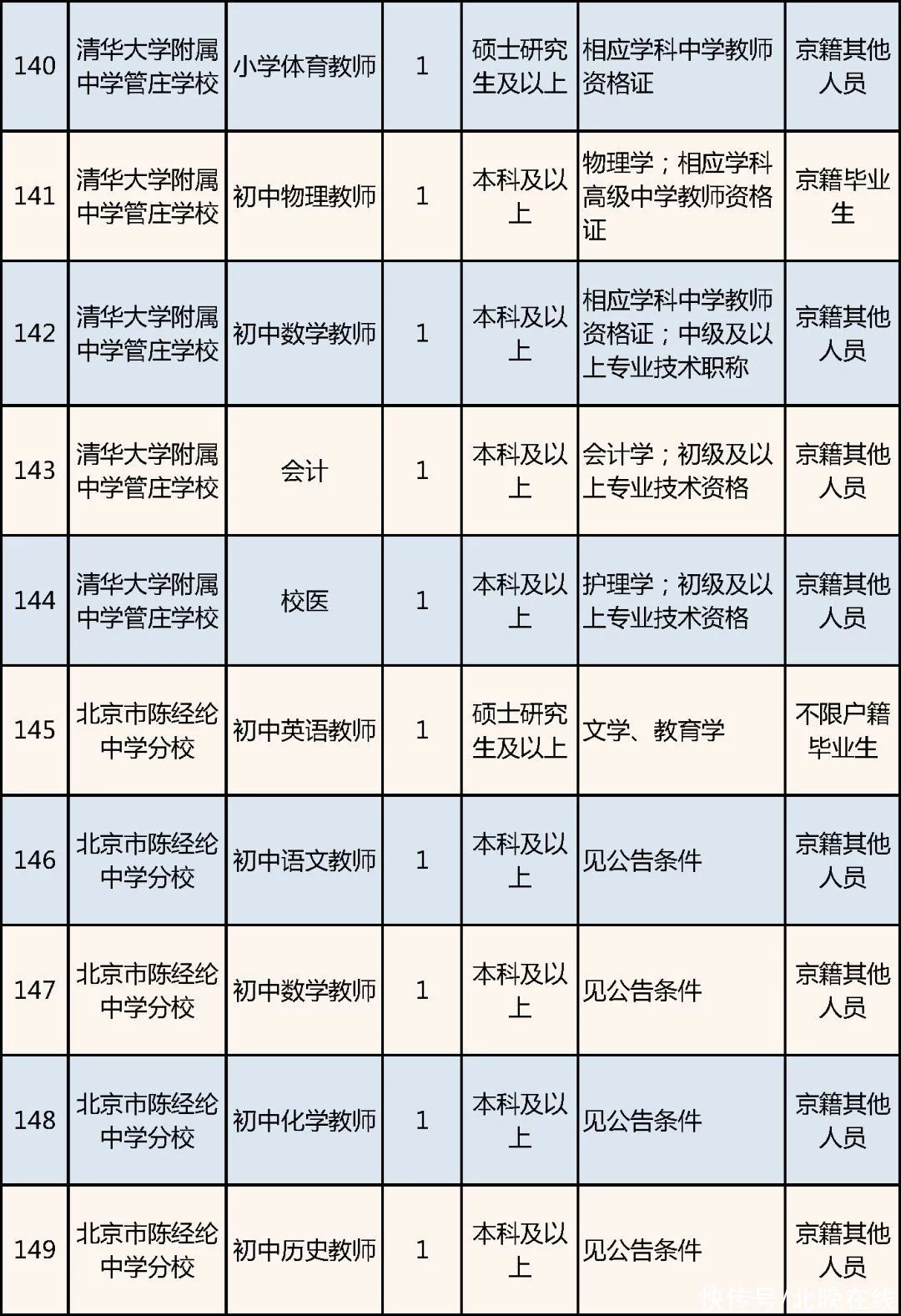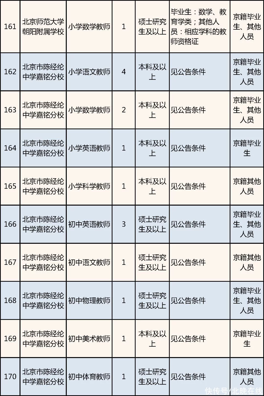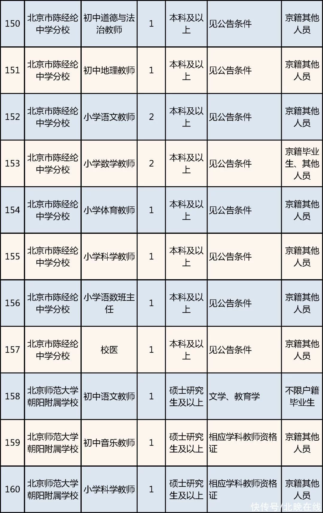招聘岗位具体条件见《北京市朝阳区教育委员会所属事业单位公开招聘岗位表》