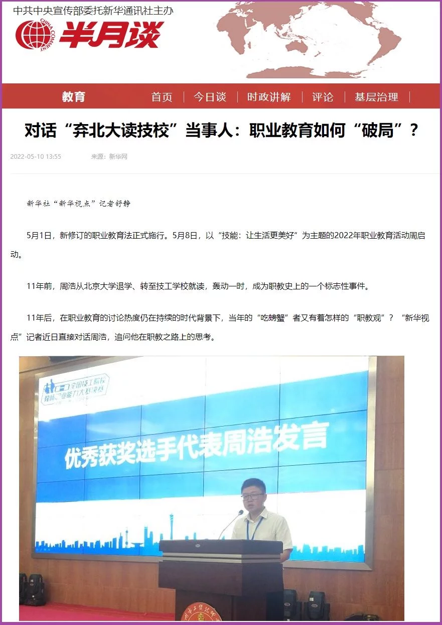 11年后,周浩怎么样了呢?近日,新华社撰文《11年前弃北大读技校,对话当事人:职业教育如何破局?》