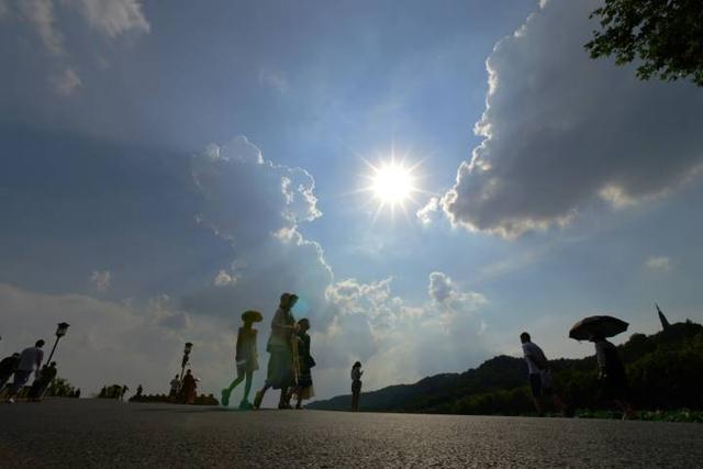 8月11日,在副热带高压的强势控制下,杭州已连续第4天高温红色预警。午后的西湖边,烈日当空,热如烧烤。浙江新闻客户端拍友 里尔 摄