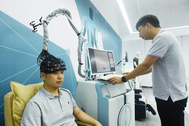 2022年7月31日,杭州市,市民在位于西湖区的西投启真脑机智能科创中心展厅里体验近红外脑功能成像系统。图片据视觉中国