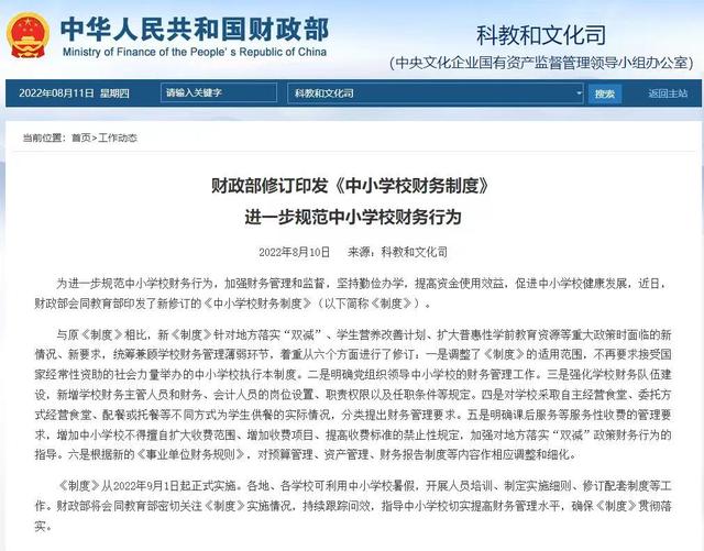 ▲财政部、教育部日前修订印发《中小学校财务制度》,进一步规范中小学校财务行为,明确要求中小学校不得擅自扩大收费范围。详情>>