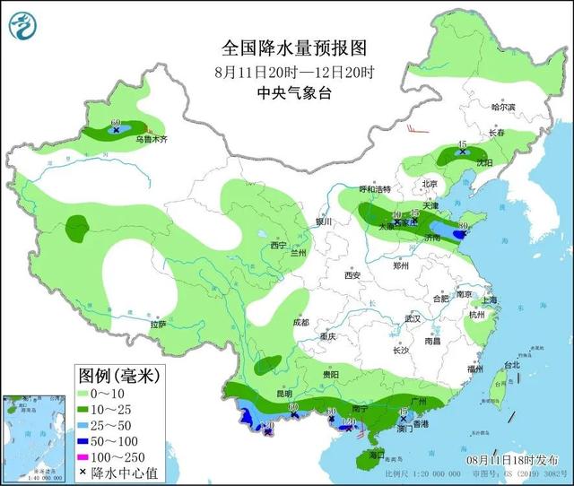 中央气象台预计,11日20时至12日20时,新疆沿天山和伊犁河谷、华北中南部、黄淮东部、西南地区南部、华南中南部等地部分地区有中到大雨,其中,新疆伊犁河谷、山东中东部、云南南部、广西南部沿海等地部分地区有暴雨,局地大暴雨。