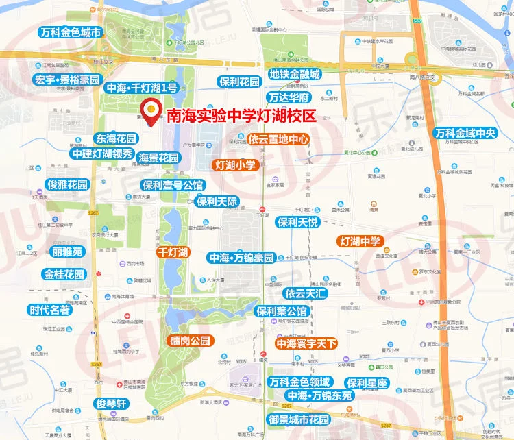 从地图上看,南海实验中学本部周边二手盘居多,包括万科金色家园、南海颐景园、御景城市花园等,均价2.3-2.8万/㎡不等;灯湖校区地处千灯湖板块,二手房均价在2.5-3万/㎡不等,包括中海千灯湖一号、中建灯湖领秀等,整体综合配套较为齐全。