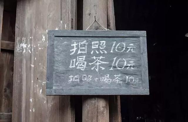 店门口的挂着一块小黑板,上面写着拍照10元,喝茶10元,拍照+喝茶10元,一共三种选择,应该99.99%的人会选择拍照+喝茶的吧,这倒挺有意思的。