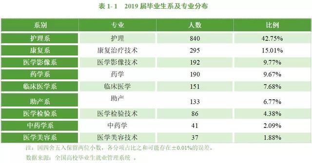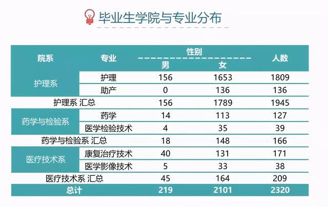 2019届毕业生分布于3个二级院系,6个专业。护理专业毕业生达到1809人。