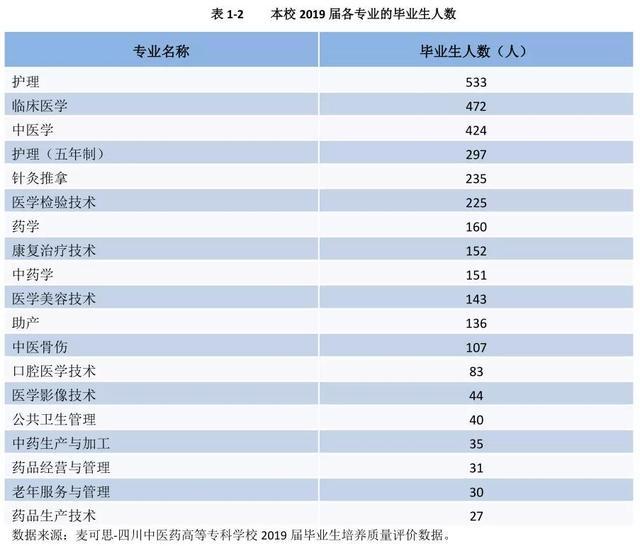 四川中医药高等专科学校2019届总毕业生人数为3325人。截止 2019 年 12 月 30 日,该校 2019 届毕业生的就业率为 91.3%。