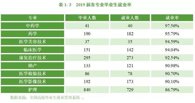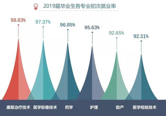 该校2019届毕业生各专业初始就业率,康复治疗技术、医学影像技术等4个专业就业率超95%。
