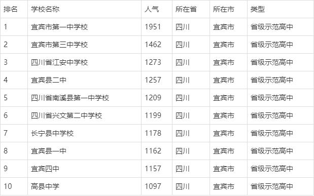 以上高中时宜宾市国家级和省级示范高中,此外还有部分高中值得推荐