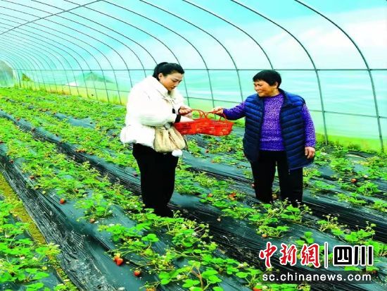 乡村要振兴,产业是抓手。近日,在营山县渌井镇观音村绿嘉园家庭农场的草莓大棚里,一粒粒鲜红的草莓让人垂涎欲滴,顾客们正在进行采摘。农场主吴继成介绍,草莓每株可挂三批果,亩产可达1500斤。