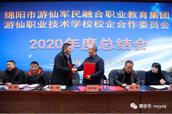 2021年1月11日,绵阳市游仙军民融合职业教育集团及校企合作委员会年会在游仙职业技术学校学术厅举行。游仙职业技术学校党委书记、校长、职教集团理事长蒲元聪、游仙职业技术学校副校长、职教集团副理事长姜俭、四川兴事发门窗公司人力资源部部长陈美玲、绵阳市游仙汽车维修行业协会会长苏刚、富乐山九州国际大酒店经理 任素雯、中国二弹城营销部部长杨帆、九州集团首席技师游洪建以及四川科莱电梯等四十余名企业领导和技师、游仙职业技术学校汽车运用与维修、电子商务、机械加工技术、旅游管理与服务专业负责人及专业教师等出席会议。职教集团秘书长文晓军主持会议。