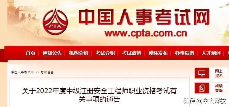 关于2022年度中级注册安全工程师职业资格考试有关事项的通告