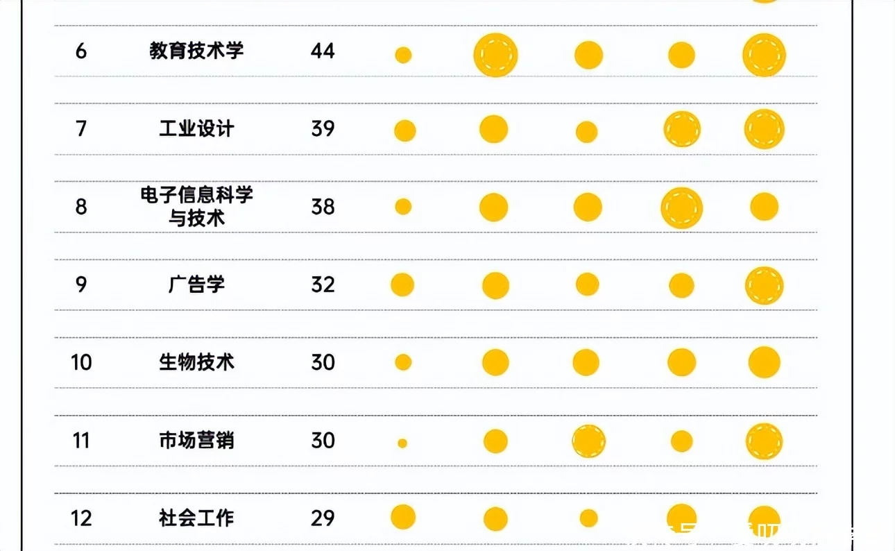生物技术和市场营销专业分别被30所大学撤销了,社会工作专业被29所大学撤销了,服装设计与工程和网络工程专业分别被28所大学撤销。
