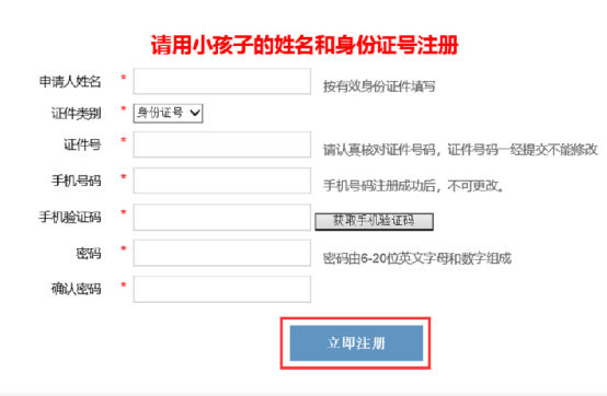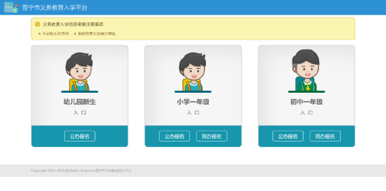 注意:小学和初中有公办和民办学校招生,如果家长要同时填报公办和民办,必须分别进入公办报名、民办报名,进行注册填写报名信息。