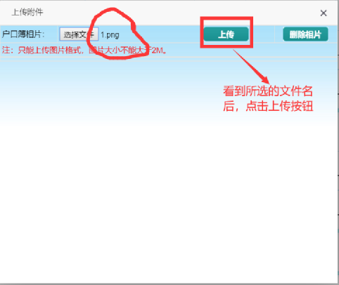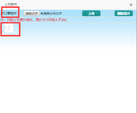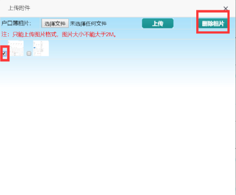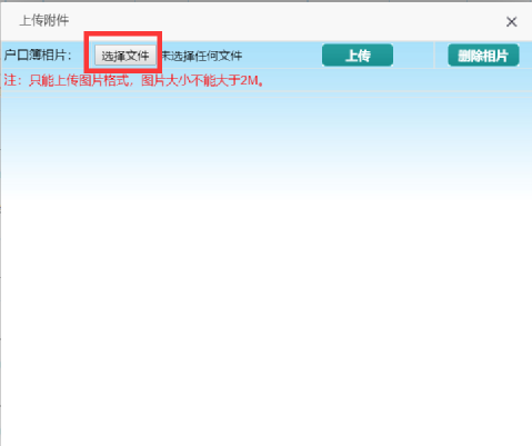 步骤1:点击户口本相片对栏中的上传按钮,弹出上传附件管理界面,如下图: