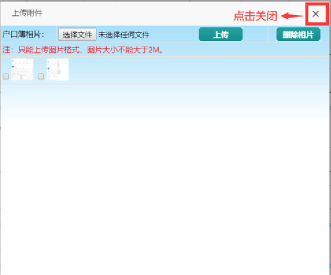 户口簿拍照上传完毕后,可点击窗口右上角的X关闭本窗口,如下图: