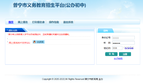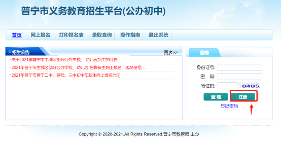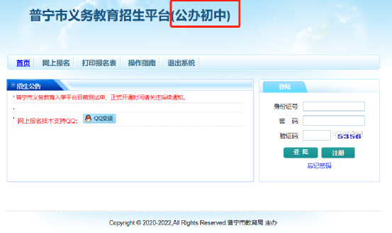 普宁市义务教育入学平台登录网址:http://pnjy.sincci.net。