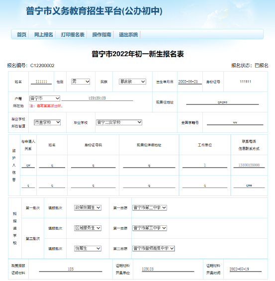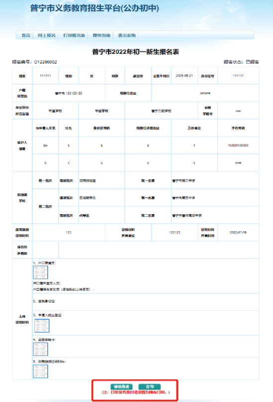 报名数据提交后,系统将跳转到信息预览页面,如下图: