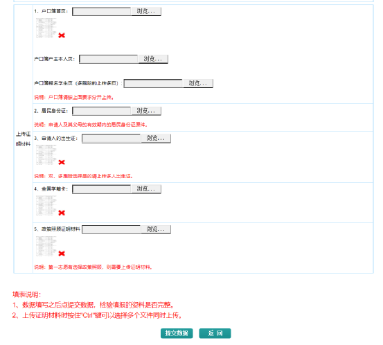 上传证明材料栏,家长需先把证明材料拍照,然后点击材料对应栏中的上传按钮,上传拍照后的照片,例如: