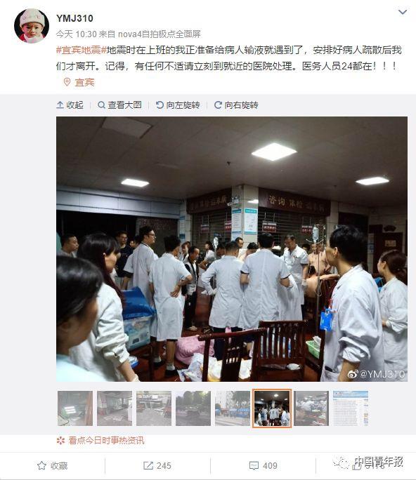 地震时在上班的我正准备给病人输液就遇到了,安排好病人疏散后我们才离开。记得,有任何不适请立刻到就近的医院处理。医务人员24小时都在。
