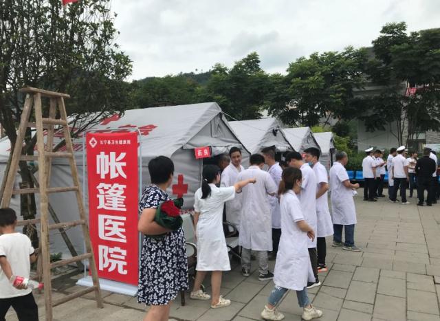 震中地区双河镇的帐篷医院已经设立,主要接诊和快速处理地震伤病员的的伤情、病情,并根据病伤情实际确定转往上级医院还是简易处理。