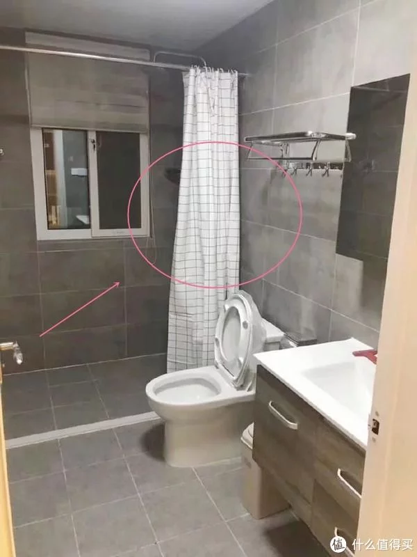 败笔六:没有装淋浴房,采用浴帘实现干湿分离