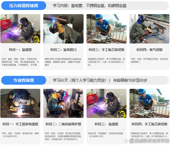 如需具体了解学校焊工培训班的课程,可以到本文底部的留言处看看,可以找到学校的沟通渠道;同时,也可以到本文顶部位置,点击学校头像,即可进入主页,在主页里面也可以找到询问方法。