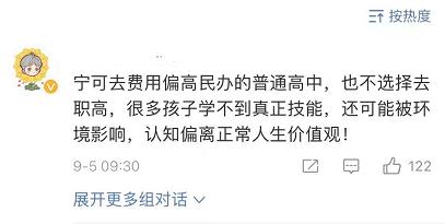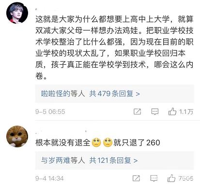 由于种种担心使得家长无法妥协让孩子上职高和技校,多数家长都表明不愿意选择职高技校这条路,无论是双减还是中考分流,只要家长认为这条路是不利于孩子的,宁愿付出更高的代价也要让学生上高中。