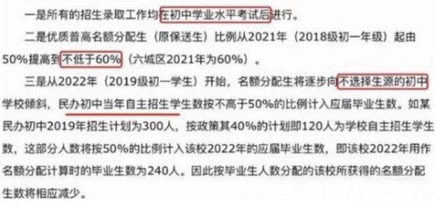 2022年起,分配生向不择优、不掐尖的初中倾斜,也就是说非重点非实验的初中,拥有更多的名额分配生。