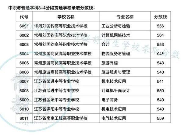 附2020年常州3+4中职与普通本科分段贯通学校录取分数线: