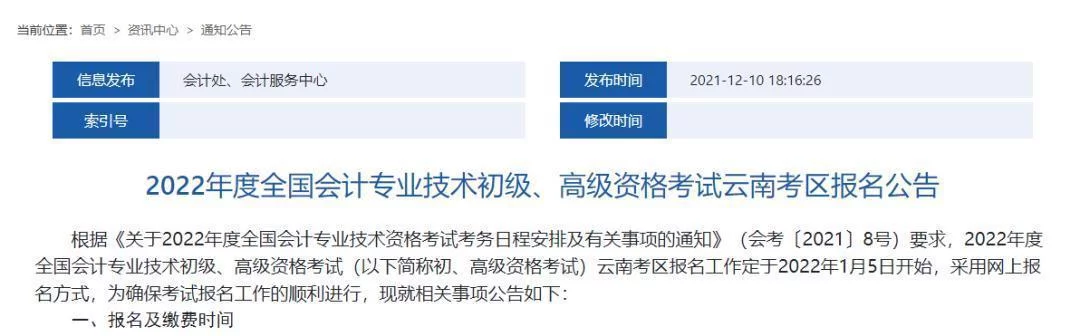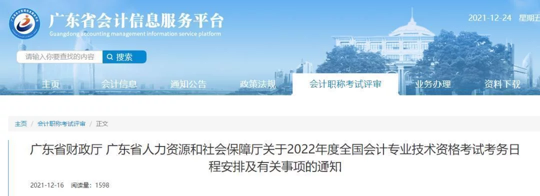 广东财政厅:报考初级资格考试的,其学历或学位应于2022年1月4日前取得
