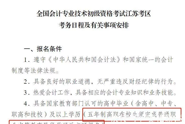 江苏财政厅:五年制高职在校生须完成普通职业中等教育阶段学习后方可报名!