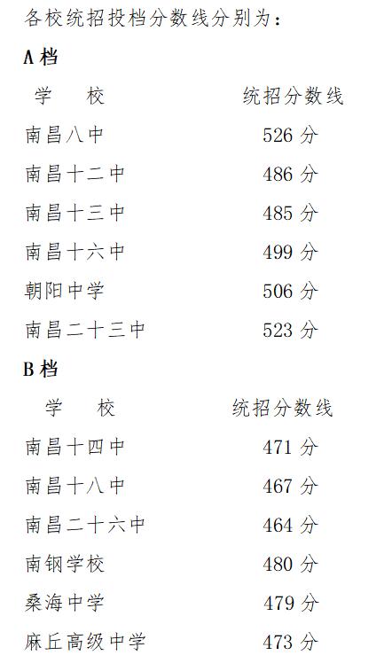 第四批次中职学校(技工学校)投档分数线第四批次中职学校(技工学校)统招录取分数线划定为300分。考生可于7月16日上午9:00凭借中招报名序号和密码登录南昌市教育考试院网站查询自己的第四批次中职学校(技工学校)录取结果。录取中职学校(技工学校)的考生必须按录取学校要求按时报到。7月21日中午12:00以前,各招生学校按要求对未按时报到考生名单进行整理并按要求将注销录取资格考生名单上传至南昌市教育考试院。具体招生有关事项提示如下:一、普通高中、职业高中录取我省普通高中、职业高中招生录取实行属地管理,广大考生、家长有关招生录取方面的问题,可拨打各级教育考试机构的咨询电话进行咨询(附后)。二、非师范定向中高职一体化长学制录取1.非师范定向中高职一体化长学制包含五年制高职(高专)和中高职对接(3+2),由省教育考试院办理录取。2.我省2022年非师范定向中高职一体化长学制志愿填报时间为8月上旬,届时,考生按照公布的五年制高职(高专)和中高职对接(3+2)招生计划和院校代码,登录江西省教育考试院网站,填报非师范定向中高职一体化长学制志愿。3.我省2022年非师范定向中高职一体化长学制录取时间安排在8月下旬。4.请广大考生及时关注8月上旬在江西省教育考试院网站公布的《关于全省2022年初中起点非师范定向中高职一体化长学制志愿填报的公告》。市、县(区)高中阶段学校招生咨询电话单位咨询电话南昌市南昌市教育考试院0791-86213989湾里管理局教体办教育股0791-83761319新建区教育考试中心0791-83752562南昌县教育考试中心0791-85736865安义县招考办0791-83410303进贤县教育考试中心0791-85667182宜春市宜春市教育考试中心0795-3997697、3199667奉新县教育考试中心0795-4626314袁州区教育考试中心0795-7028790万载县招考办0795-8820907上高县招考办0795-2509317宜丰县教育考试中心0795-2751086靖安县招考办0795-4662638铜鼓县招考办0795-8724680丰城市教育考试中心0795-6609212樟树市考试中心0795-7160709高安市招考办0795-5294379上饶市上饶教育考试中心0793-8206747信州区中招办0793-8232499广信区中招办0793-8444611广丰区中招办0793-2623091玉山县中招办0793-2117826铅山教育考试中心0793-7963836横峰县中招办0793-5791421弋阳县中招办0793-5812290万年县中招办0793-3789200余干县中招办0793-3396059鄱阳县中招办0793-6217231婺源县中招办0793-7416323德兴市中招办0793-7588865萍乡市萍乡市教育考试中心0799-6213533安源区教育考试中心0799-6667827湘东区教育考试中心0799-3448643芦溪县教育考试中心0799-7555990上栗县教育局中招办0799-3664289莲花县教育考试中心0799-7222719经开区教体局中招办0799-6792037抚州市抚州市教育考试中心0794-8263412临川区教育考试中心0794-84430720794-8423986抚州高新区社会事业局0794-7069077东临新区公共服务局0794-7825301南城县教育考试中心0794-7257913黎川县教育考试中心0794-7503089南丰县教育考试中心0794-3318108崇仁县教育考试中心0794-6324856乐安县教育考试中心0794-6590737宜黄县教育考试中心0794-7600859金溪县招生考试中心0794-5269839资溪县教育考试中心0794-5792640东乡区教育考试中心0794-4233423广昌县教育考试中心0794-3618619赣州市赣州市教育考试中心0797-8228565章贡区教育考试中心0797-8350261赣州经开区教体服务中心0797-8379880蓉江新区社管局中招办0797-8165855南康区教育考试中心0797-6646932赣县区教育考试中心0797-4437200信丰县教育考试中心0797-3339096大余县教育考试中心0797-8732362上犹县教育考试中心0797-8543160崇义县教育考试中心0797-3812441安远县教育考试中心0797-3729905龙南市教育考试中心0797-3559539定南县教育考试中心0797-4290145全南县教育考试中心0797-2631202宁都县教育考试中心0797-6830031于都县教育考试中心0797-6335363兴国县教育考试中心0797-5322365会昌县教育考试中心0797-5628977寻乌县教育考试中心0797-2842197石城县教育考试中心0797-5700653瑞金市教育考试中心0797-2509986吉安市吉安市教育考试中心0796-8239233吉州区教育考试中心0796-8263008青原区教育考试中心0796-8186232吉安县教育考试中心0796-7187907吉水县教育考试中心0796-8680368峡江县教育考试中心0796-7187907新干县教育考试中心0796-2602715永丰县教育考试中心0796-7123818泰和县教育考试中心0796-8638408遂川县教育考试中心0796-6322448万安县教育考试中心0796—5701386安福县教育考试中心0796-7622013永新县教育考试中心0796-7730460井冈山市教育考试中心0796-7163695景德镇市景德镇市教育考试中心0798-8576228乐平市教育考试中心0798-6786609浮梁县中招办0798-2625306昌江区教育股0798-8330717珠山区中招办0798-8666613九江市九江市教育考试中心0792-8223470柴桑区教育体育局教育股0792-6822051、6821533庐山市中招办0792-2661836彭泽县中招办0792-7199200瑞昌市教育局教育股0792-4224978永修县中招办0792-3220945共青城教育体育局教育股0792-4357311湖口县教育体育局教育股0792-6566530武宁县教育体育局教育股0792-2780787修水县教育体育局教育股0792-7233471都昌县教育体育局教育股0792-5231809濂溪区教育体育局中招办0792-8170583德安县教体局中招办18160720621新余市新余市教育考试中心0790-64290990790-6413766渝水区教育考试中心0790-6222660分宜县教育考试中心0790-5882192鹰潭市鹰潭市教育考试中心0701-6229272贵溪市教育考试中心0701-3325061余江区教育考试中心0701-5888730月湖区教育考试中心0701-6221749龙虎山风景名胜区文教卫生