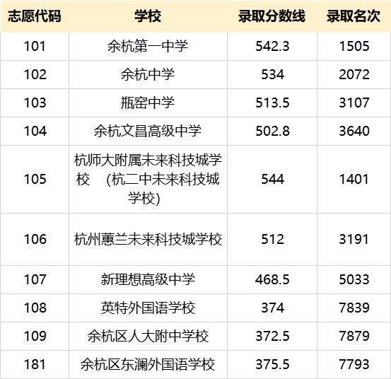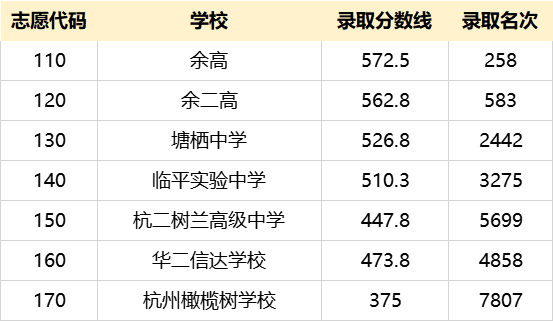 根据《关于做好2022年余杭区、临平区各类高中招生工作的通知》文件,两区各类高中招生第一批次最低录取分数线及最低录取名次已于7月6日划定。现予以公布: