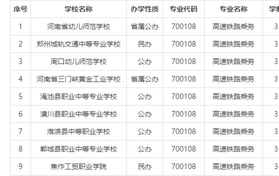 河南省开设高速铁路乘务专业的中职学校名单