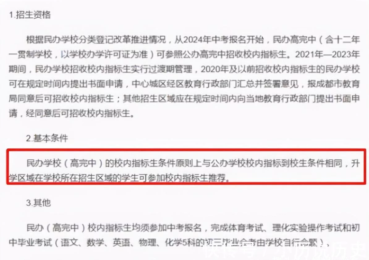 民办高中的校内指标生条件原则上似乎和公办高中保持一样的,两者的招生条件是一样的,同时还要求民办高中不能跨省市进行招生了,只可以招生同省市内的考生。