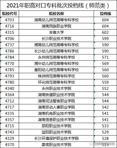 基本上, 湖南幼儿师范高等专科学校 湖南民族职业学院 吉首大学 长沙职业技术学院 湘南幼儿师范高等专科学校 长沙幼儿师范高等专科学校 永州师范高等专科学校 湘中幼儿师范高等专科学校 衡阳幼儿师范高等专科学校 株洲师范高等专科学校 怀化师范高等专科学校 这些师范类的院校,分数线都达到了五六百分。
